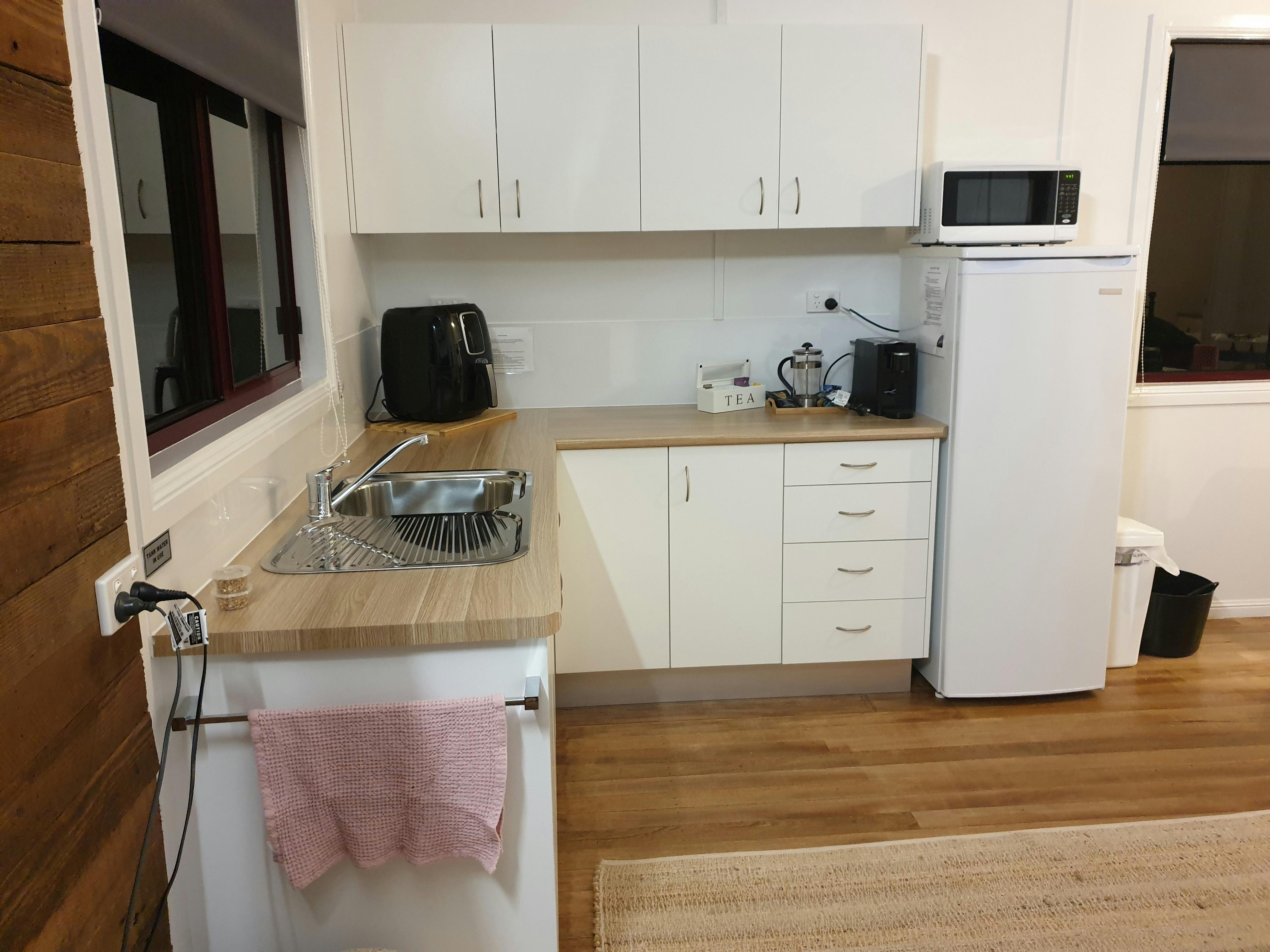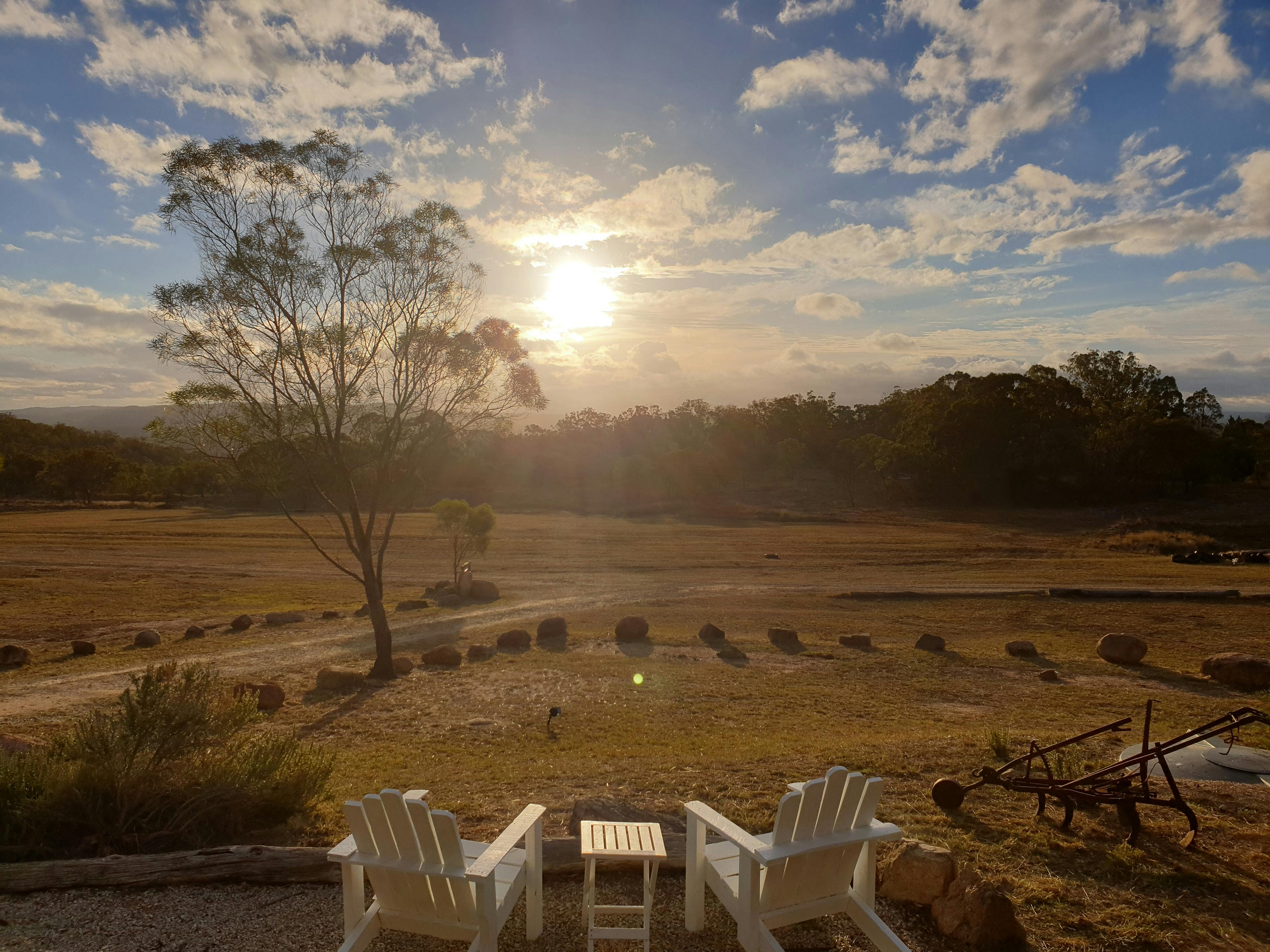Relax with a local wine amongst the trees, friendly kangaroos and enjoy the fresh country air, peace and serenity of the bush. Take a walk to the highest point and watch the glorious sunsets over the mountain- or just sit on your balcony and watch the sun go down.
